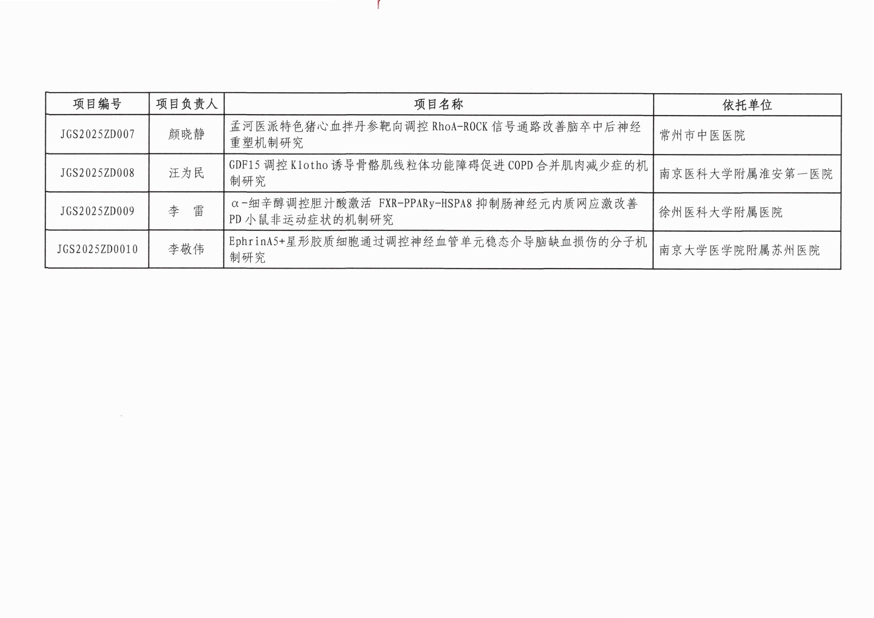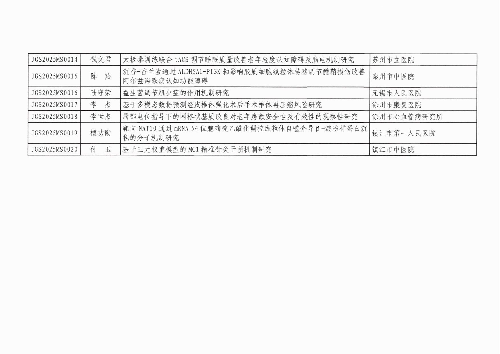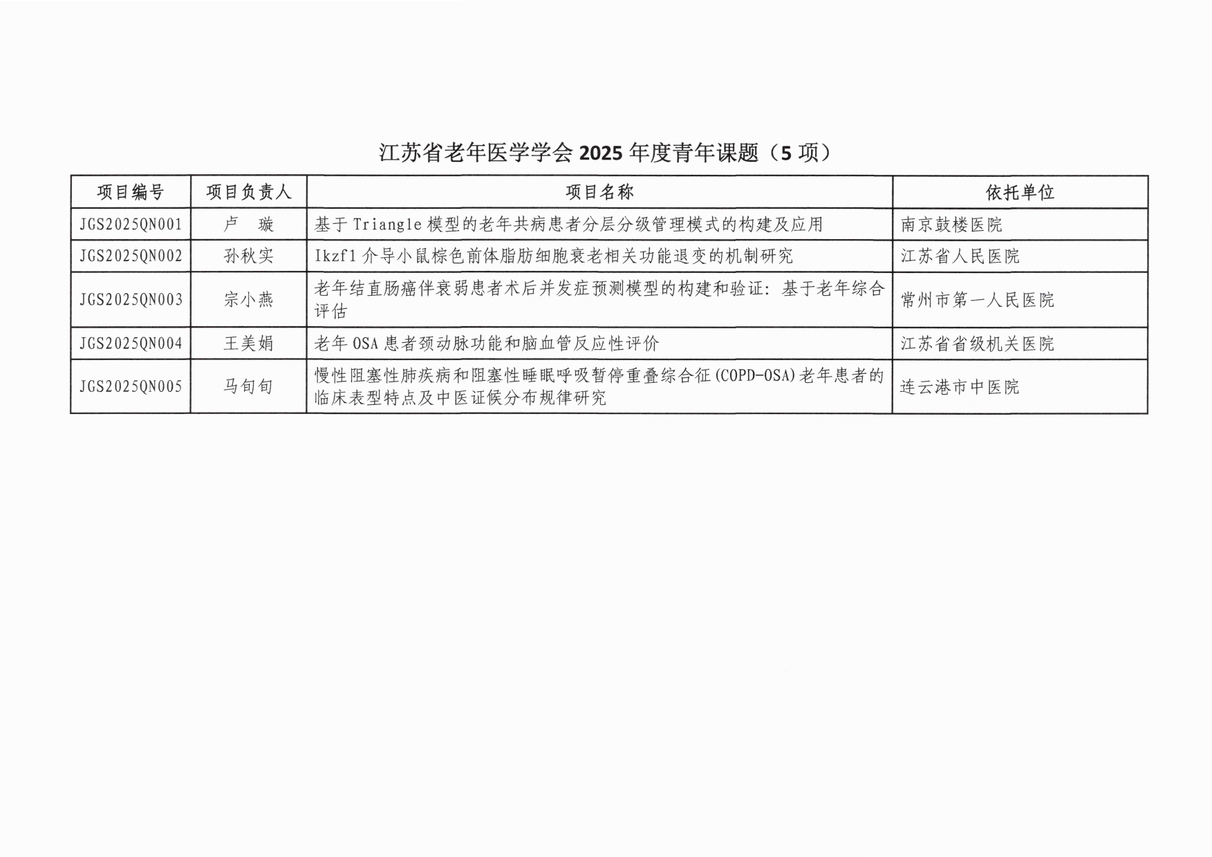江苏省老年医学学会关于2025年度科研课题批准立项的通知
