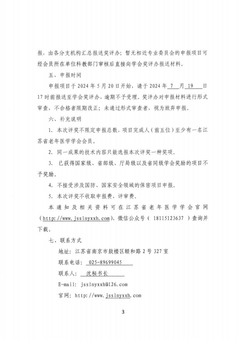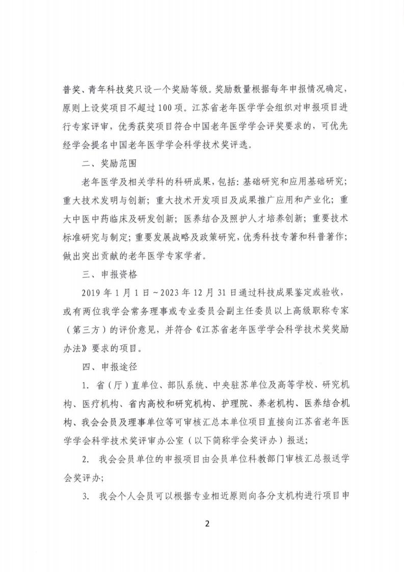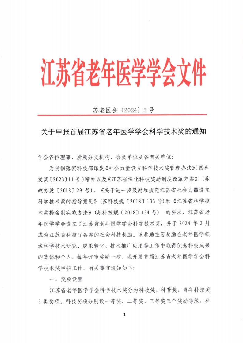 关于申报首届江苏省老年医学学会科学技术奖的通知
