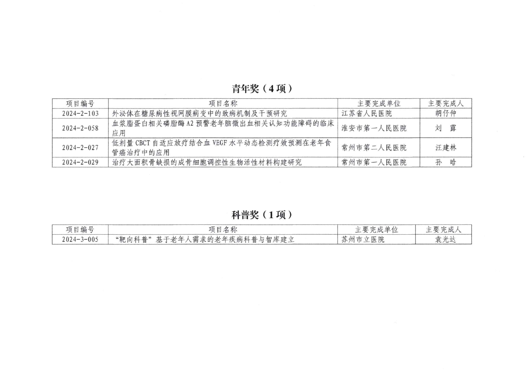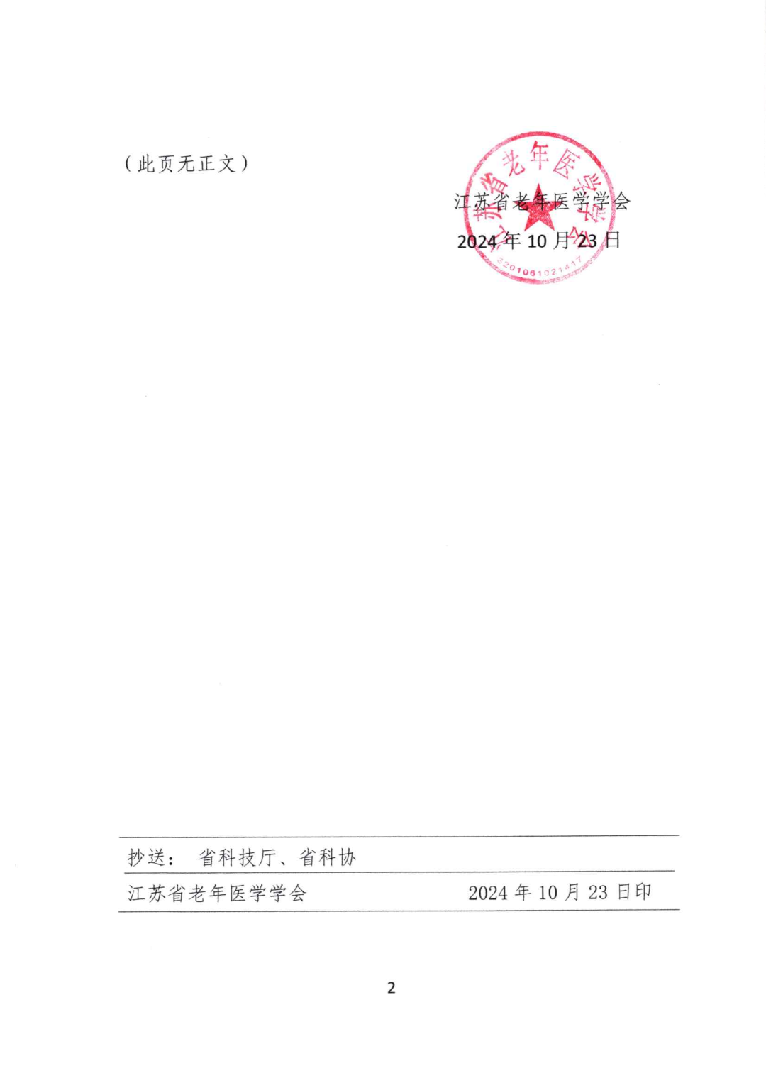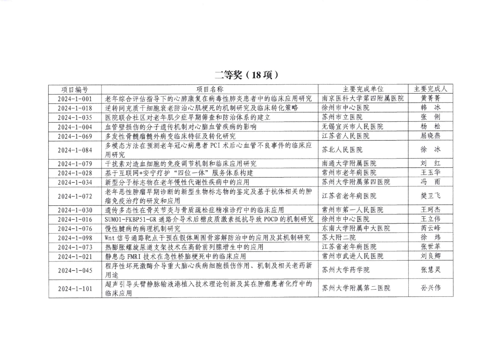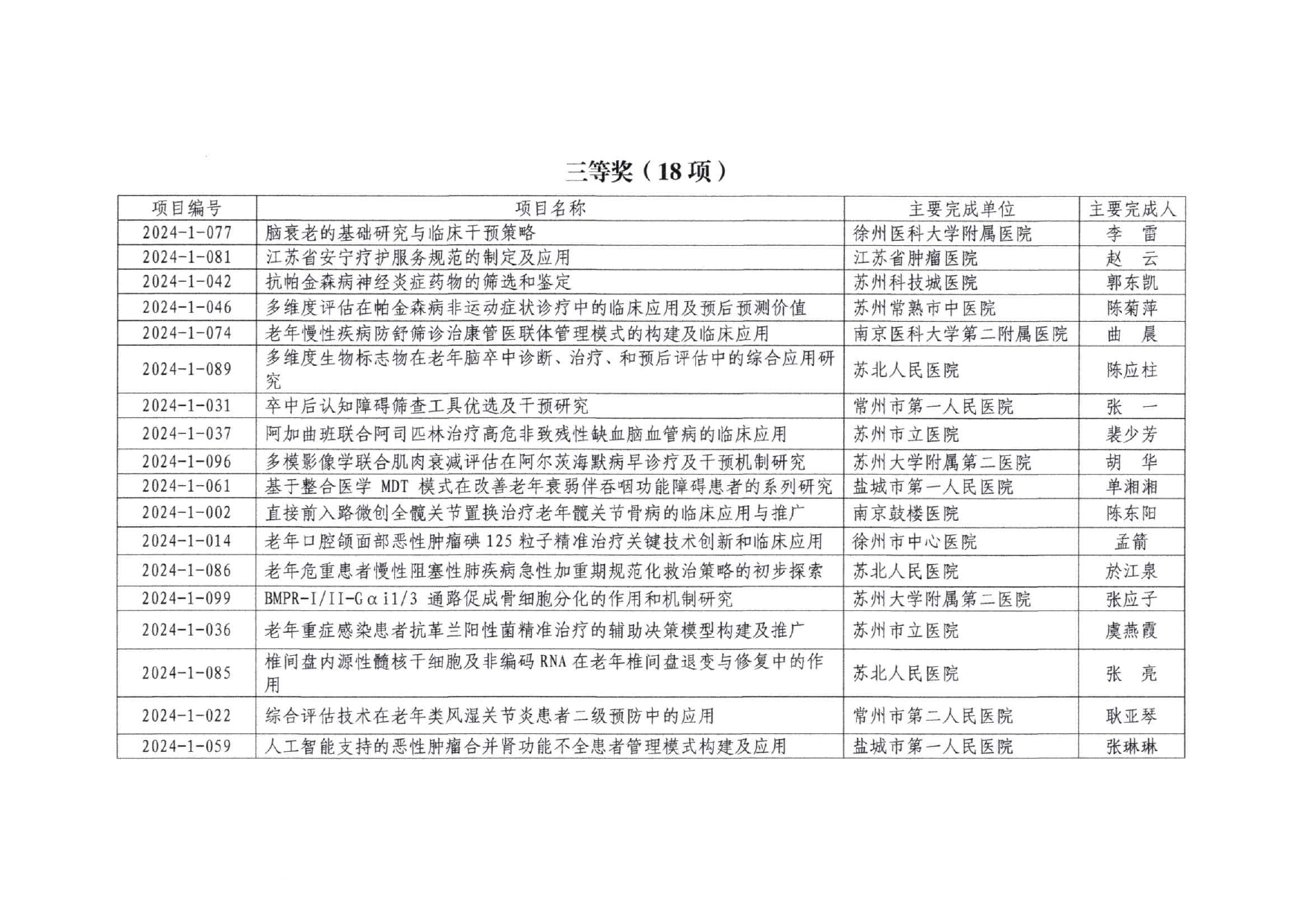 关于2024年度江苏省老年医学学会科学技术奖拟获奖名单的公示