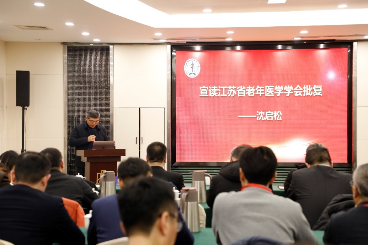 首先,沈启松秘书长宣读了江苏省老年医学学会关于同意成立介入放射学分会的批复。接着江苏省中医院介入科主任邵泽锋主任做了江苏省老年医学学会介入放射学分会筹备工作报告。